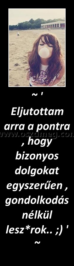 2012-02-01 20:37:08 | ~ ' Eljutottam arra a pontra , hogy bizonyos dolgokat egyszerűen , gondolkodás nélkül lesz*rok.. ;) ' ~ |