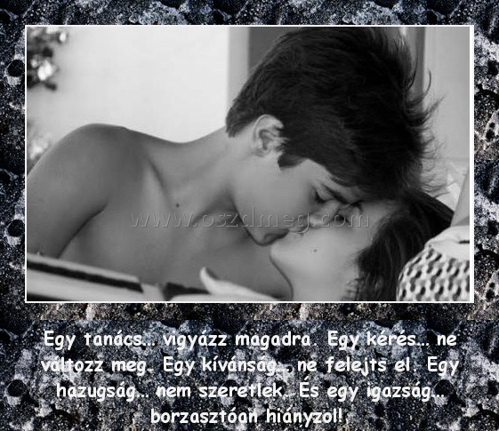 - Hiányoznak a melléd fekvős, hozzád bújós pillanatok. Hiányzik ahogy rám nézel. Hiányzik, hogy hozzám érj, hogy magadhoz húzz, hiányzik az ölelésed. A csókod. Ahogy a levegőt veszed. De leginkább az hiányzik, aki vagy, mikor velem vagy - és ami én vagyok, mikor melleted vagyok.