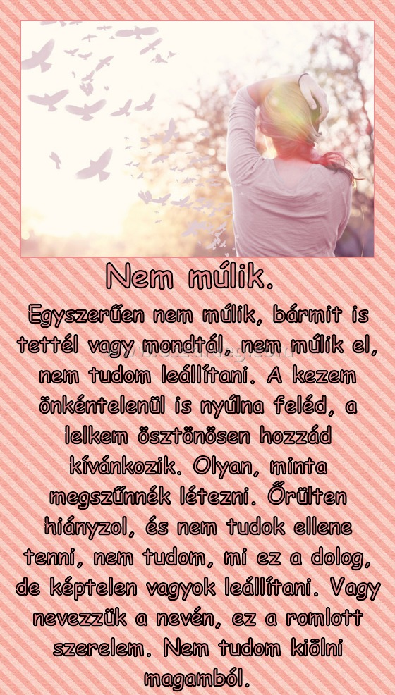 Vannak pillanatok, | Te vagy életem szerelme | Miért nem alakulhatott ez másképp köztünk? | Nem múlik. |